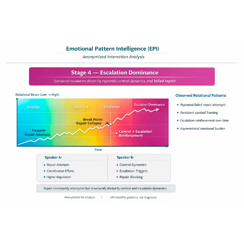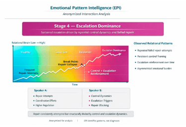 Rather than relying on isolated excerpts or sentiment scoring, EPI surfaces relational structure across message sequences.