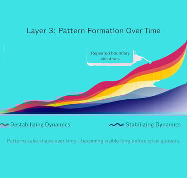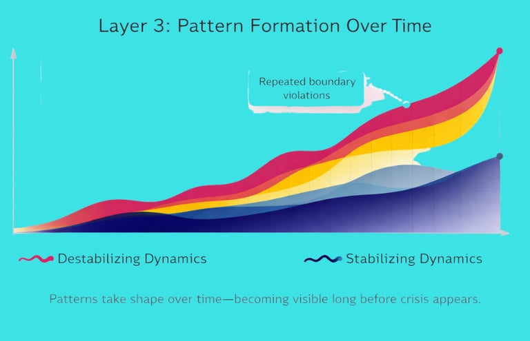 The system evaluates how those dynamics repeat, shift, intensify, or resolve across time.